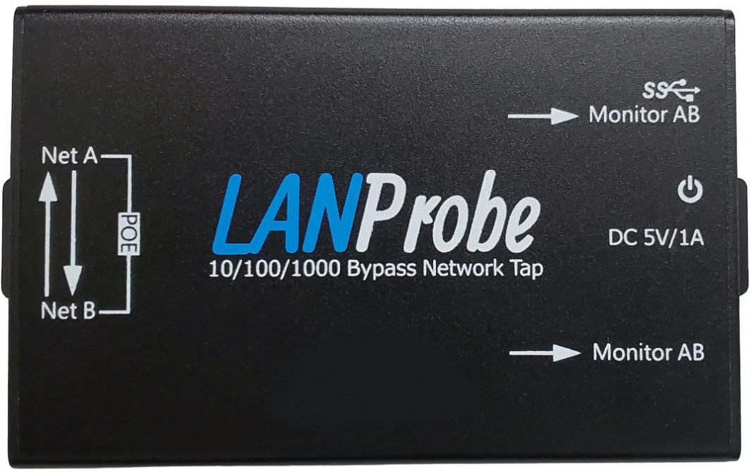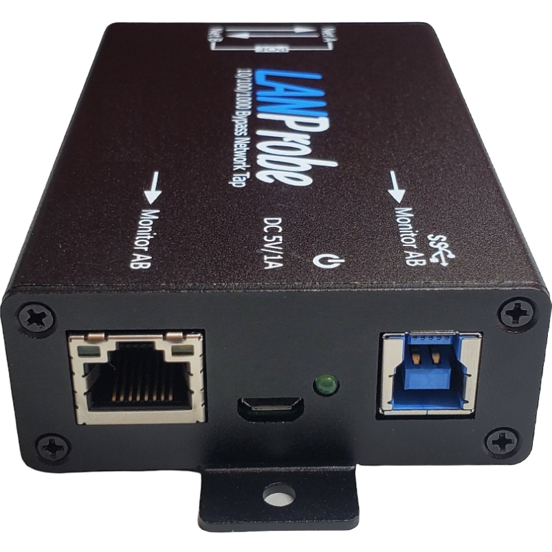 LANProbe offers several key features that make it an essential tool for network administrators. It features the ability to bypass itself in case of power failure, ensuring that network data is captured with minimal impact. Plus, the two monitor/sniff ports are isolated from the network being monitored, ensuring accurate and reliable data capture. It also has Power-over-Ethernet (POE) pass-through capability. Therefore, it won’t interfere with POE powered device like VOIP phones or cameras. The device can be powered using a PC on the USB3.0 port or a 5-volt wall transformer.